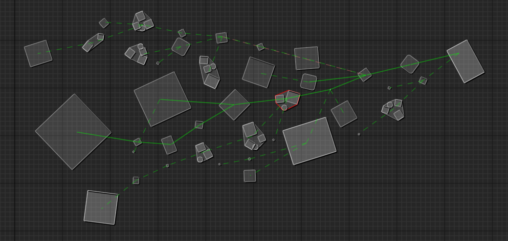 To start, we needed to define some rules that an algorithm can follow. One simple rule we needed was “elements shouldn’t overlap”, but we also wanted more complex constraints like “the respawn checkpoint should be 20-30m away from the final boss”.