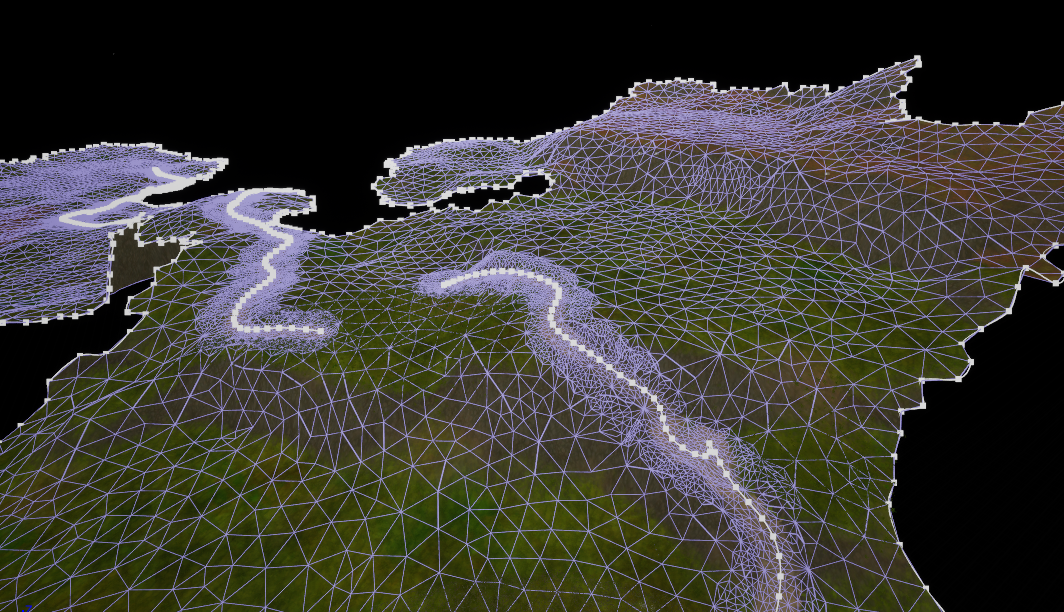 Here we generated a 3D mesh for the terrain, and added in things such as: