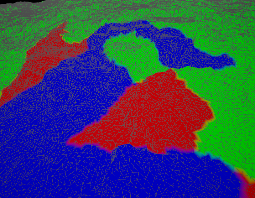 For the space in between elements, we ran a flood fill algorithm to help expand the different biomes over the entire terrain mesh.